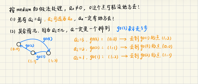 ## Educational Codeforces Round 165 ### D **[D. Shop Game](https://codeforces.com/contest/1969/problem/D)** 商店有$$n$$件商品,Alice 和 Bob 在玩游戏,Alice 进货一些商品(可以不进货),进货价是$$a_i$$ 然后 Bob 从 Alice 进货的商品中去买一些,Bob 的购买价是$$b_i$$ 如果进货商品$$\leqslant K$$,Bob 免费拿走所有的商品 否则,Bob **任选**其中的$$K$$件拿走,然后剩下的对应付钱,编号`i`的商品,付给 Alice `b[i]` 现在 Alice 希望最大化自己的利润,而 Bob 目标是最小化 Alice 的利润 求上述条件下,最大化的利润 **算法分析** > 动态规划 对每一件商品 ```bash earn: b[i] - a[i],earn <= 0 的一律不进货 cost: -a[i] loss: 如果 Bob 选择白嫖商品,不仅仅 earn 这么多的钱赚不到,还要倒贴 cost = -a[i] 的钱 cost[i] - earn ``` 状态转移如下 ```bash dp(i, B, K) 表示当前考虑商品 i,买/不买,白嫖/不白嫖,最小利润 1.不买,不白嫖 dp(B, K) <-- last(B, K) 2.买,不白嫖 dp(B, K) <-- last(B-1, K) + earn 3.买,白嫖 dp(B, K) <-- last(B-1, K-1) + (earn + loss) 最后的答案是枚举买的商品 for B = K+1 to n chmax(dp(B, K)) ``` > 动态规划的复杂度显然不对,考虑优化,有没有贪心性质 假设说 Alice 买了$$S$$件商品,需要选$$k$$件来供 Bob 白嫖,Bob 会怎么选? 可以猜到,Bob 的选择方式差不多是固定的 假设说当前$$S$$件商品,如果不让白嫖的话,Alice 可以赚的钱是$$tot$$ 如果商品$$i$$被白嫖,$$tot = tot - earn_i - cost_i = tot - (b_i - a_i) - a_i = tot - b_i$$ (不仅原来的利润赚不到,还要倒贴成本$$a_i$$) 那么 Bob 就一定会选择$$S$$中,$$b$$最大的$$k$$个数 那么自然想到,根据$$b$$从大到小排序,划分成两个集合,$$A = [0, k), B = [k, n)$$ 先初步这样划分,假设说当前 Alice 能**赚的钱**是`resA, resB`(两个集合分开) 对于$$i \in A$$,这个商品对`resA`的贡献是`-a[i]`(纯倒贴钱) 对于$$i \in B$$,这个商品对`resB`的贡献是`max(0, b[i] - a[i])` > 但这样不一定是最优的,但可以确定的是,最优解一定是$$\subseteq A$$,扔掉$$A$$中的一些商品 然后再从$$B$$中拿一些元素放到$$A$$中,补齐到$$k$$个 令$$res = resA + resB$$,如果我们选择**扔掉**$$A$$中的商品$$x$$,加入$$B$$中的商品$$y$$,会怎么变化? ```bash 扔掉,resA = resA - (-a[x]) 从 B 集合挪到 A 集合, resB -= max(0, b[y] - a[y]), resA += (-a[y]) ``` 注意到,如果不考虑$$b_y - a_y \leqslant 0$$的情况,$$res = res + a_x - b_y$$ 因为 Bob 决策的确定性,总是偏向于选择`b`较大的,所以$$b_y$$是确定的 就是剩下的元素中$$b$$最大的那个(这一点从大到小排序很容易满足) 那么 Alice 需要最大化它的利润,Alice 要尽可能选$$a_x$$较大的 而$$a_x$$哪里来呢?$$a_x \in A$$,如果要扔掉$$A$$中的一些商品,一定是扔掉$$a_x$$最大的几个 可以用**大根堆**来维护集合$$A$$ 考虑枚举每个$$j \in B$$,扔掉$$A$$的堆顶元素,加入商品$$j \in B$$ 此时的`res`,然后更新答案 > 坑点 按道理说,在$$B$$集合中,是不是只需要考虑$$b_i - a_i > 0$$的元素呢? 这样会导致最优解错误,为什么呢? 假设说,$$B$$集合中,有一个`(a 很小, b 却很大)`的商品,我们按道理是不会去买这个商品的 但是,我们可以把它加入到$$A$$集合中让 Bob 白嫖,这样只需要花费很小的代价 比如`(a[i], b[i]) = (1, 9999)`,让`bob`白嫖,只需要`-1`的代价 所以枚举的时候,每个元素都要考虑进去 对于每一件商品,按照$$\max(0, b_i - a_i)$$来算贡献才是合适的 ## Codeforces Round 1070 (Div. 2) ### D **[D. Fibonacci Paths](https://codeforces.com/contest/2176/problem/D)** 给定一个有向图,每个点有权值,问简单路径的数量,满足 简单路径至少要有 2 个点,路径上的点,对应的点权,构成广义斐波那契数列 其中`a[1], a[2]`头两项的值任意,其余的项必须满足`a[i] = a[i-1] + a[i-2]` **算法分析** > 注意到以下几点性质 1.因为$$a_i = O(10^{18})$$,实际上,可能的斐波那契路径长度,最长是$$O(\log)$$的 2.斐波那契数列,能不能继续扩展,只和最后两项有关 3.如果得到一个很长的斐波那契数列,$$(fib\_1, fib\_2)$$作为头两项,如果从$$i > 2$$截断 那么$$(fib\_{i}, fib\_{i+1})$$作为头两项,仍然构成斐波那契数列 4.斐波那契数列构成的图,是一个 DAG,因为每一项都是单调递增的,不可能有返祖边 > 这样可以设计一个记忆化 dp 拆点,注意到斐波那契的路径长度最长就是$$O(\log)$$,假设说$$v$$可以作为斐波那契的起点 那么符合条件的$$(pre_v, v)$$数量也是$$O(\log )$$的 需要记一下以$$v$$结尾,最后两项的和为`S`的方案数$$dp(v, S)$$ 同一个点可能会对应成多个不同链的结尾,有不同的最后两项和 即`(v, s1), (v, s2), ....., (v, sk)`,其中$$k = O(\log)$$ ```bash 对于(x, y),如果 a[y] = s (从 x 开始扩展,并且最后两项的和是 s 的方案数) += (从 y 开始扩展,并且最后两项和是 a[y]+a[x] 的方案数) ``` 做的时候,可以枚举斐波那契第一项的起点在$$(x, 0)$$,然后**记忆化 dp** ```bash dfs(x, S): for y in g[x], 如果 a[y] = S 等价于求解以 (x, y) 作为起点,即前两项,最后两项和是 a[x]+a[y] 的方案数 res += 方案数 ``` > 算法实现 ```bash void solve() { using pint = pair<int, i64>; map<pint, mint> dpv; auto dfs = [&](auto &dfs, int x, i64 sum) -> mint { if (dpv.contains(make_pair(x, sum))) { return dpv[ pint{x, sum} ]; } auto &res = dpv[ pint{x, sum} ]; sum == 0 ? res = 0 : res = 1; for (auto y : g[x]) if (sum == 0 or a[y] == sum) { auto add = dfs(dfs, y, a[x] + a[y]); res += add; } return res; }; mint ans = 0; for (int x = 1; x <= n; x++) ans += dfs(dfs, x, 0LL); } ``` ## 2020 ICPC 小米 网络选拔赛 ### E **[Phone Network](https://ac.nowcoder.com/acm/contest/7501/E)** 给定一个长度为`n`的序列`a`,每